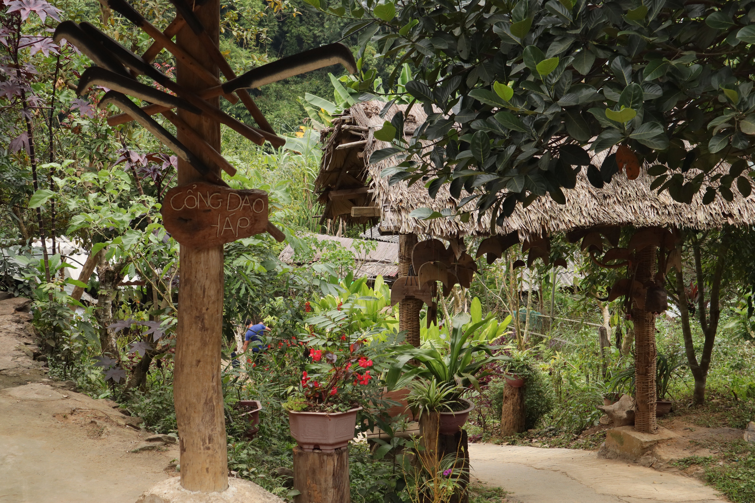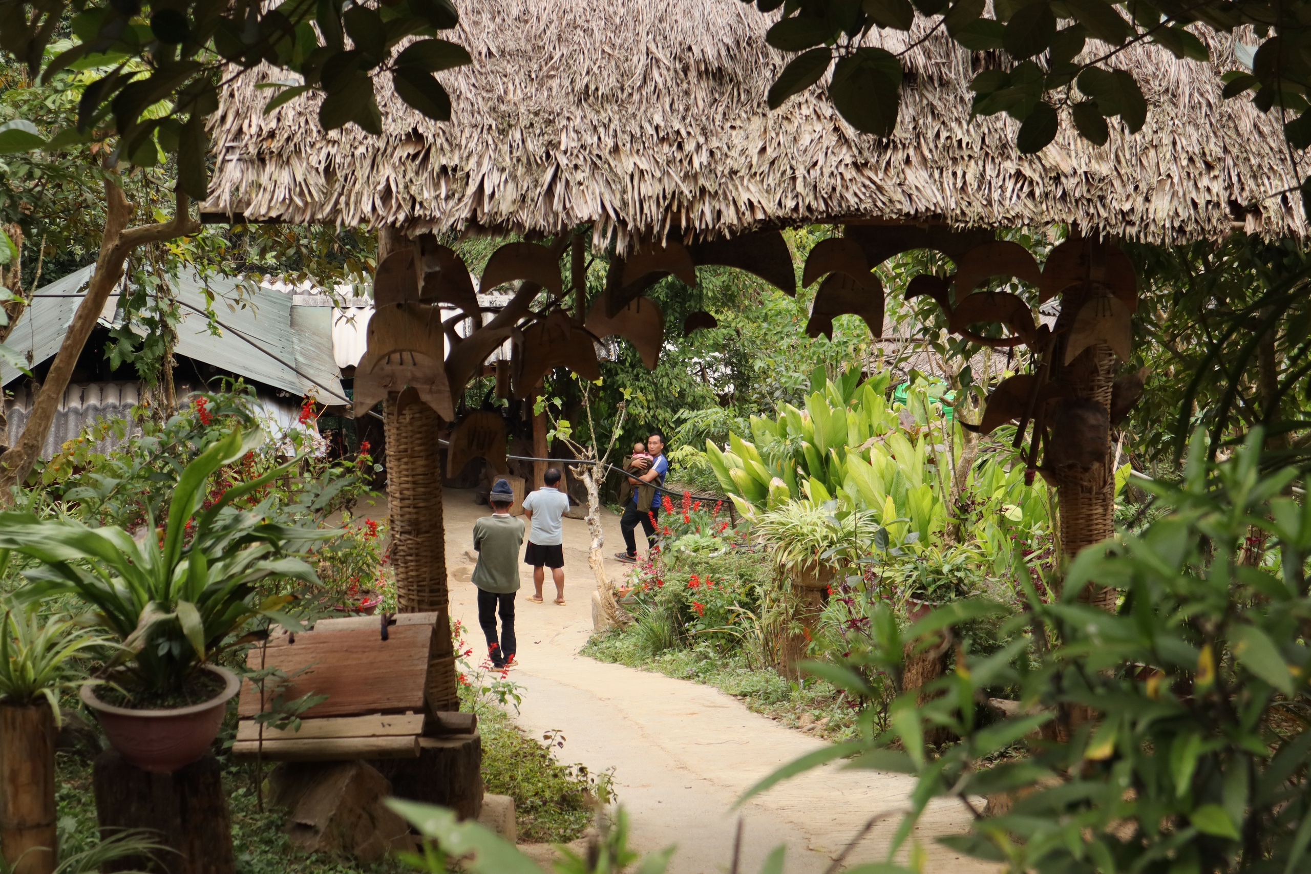 Đáng chú ý, dù đường đi còn nhỏ, bản đã quy hoạch một bãi đỗ xe rộng dưới tán rừng trúc, đủ chỗ cho xe 45 chỗ quay đầu, nhằm đón đầu sự phát triển giao thông trong tương lai.