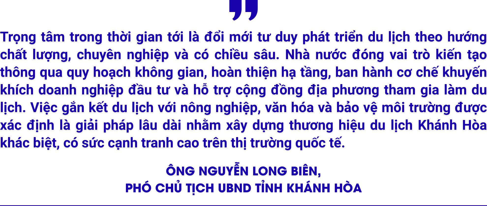 Khánh Hòa nay đã khác và đang đứng trước cơ hội “ngàn năm có một” để trở thành trung tâm du lịch tầm cỡ châu Á. Khánh Hòa quyết tâm đưa “con tàu du lịch” vươn ra biển lớn, trong đó nông nghiệp sinh thái và văn hóa bản địa được xác định là “mỏ neo” vững chắc giữ chân du khách.