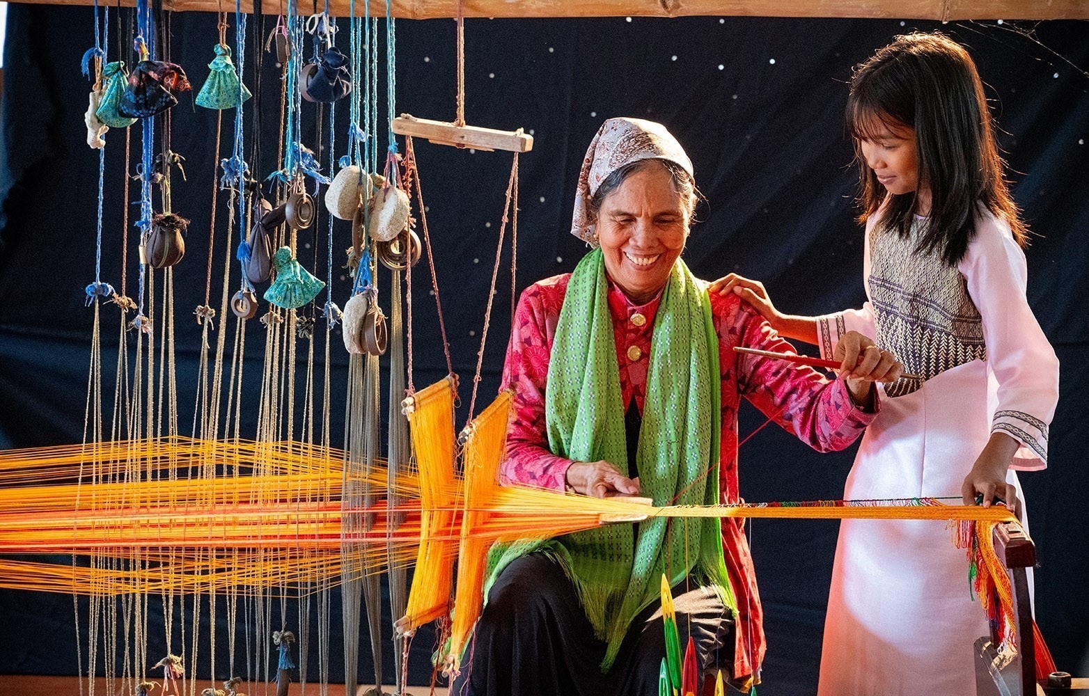 Làng dệt Mỹ Nghiệp (xã Ninh Phước, tỉnh Khánh Hoà) từ lâu đã được xem là cái nôi của nghề dệt thổ cẩm truyền thống người Chăm, nơi người dân vẫn lưu giữ khung dệt cổ cùng cách thức dệt truyền thống tỉ mỉ, đòi hỏi sự khéo léo và nhiều kinh nghiệm