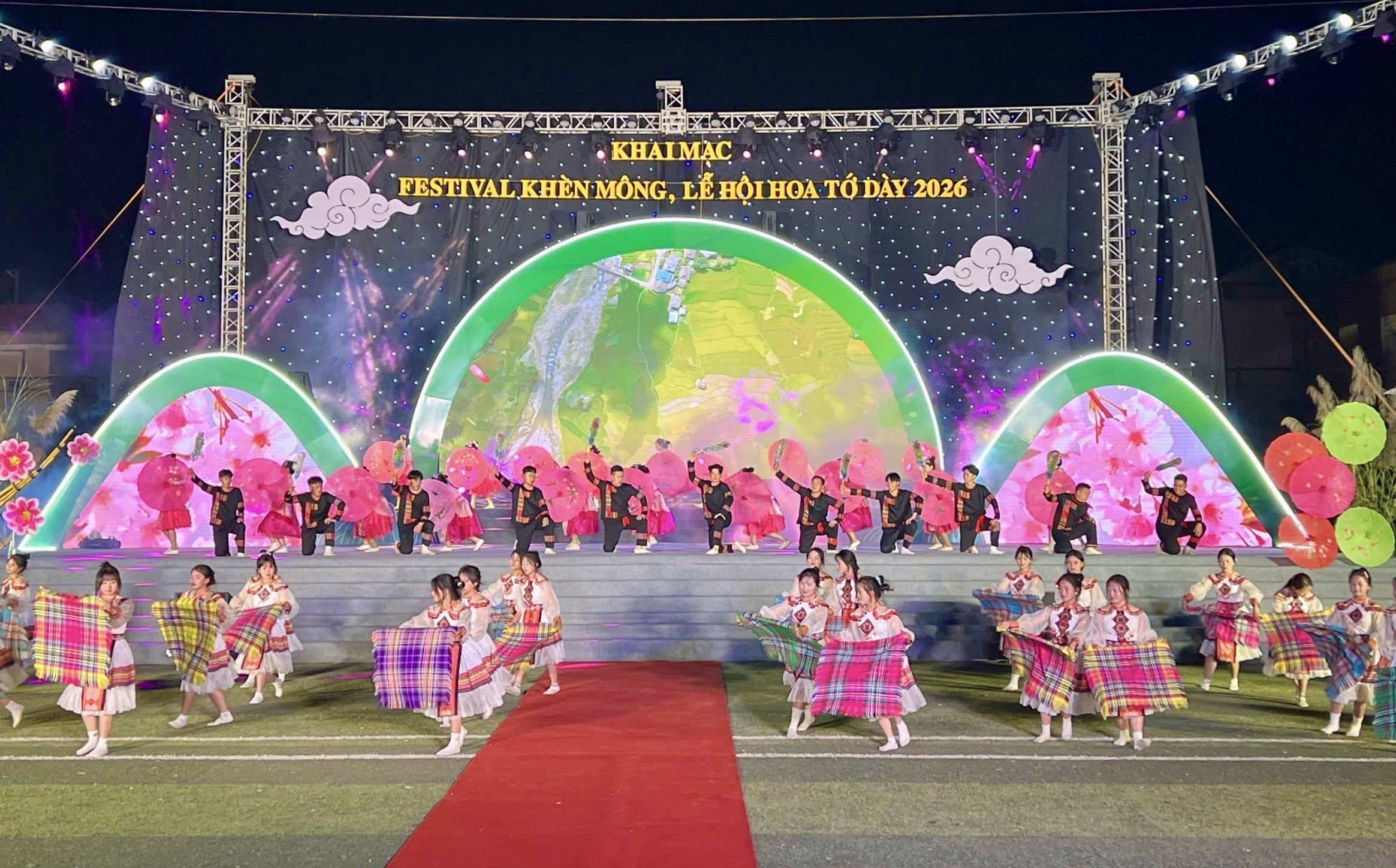 Festival Khèn Mông - Lễ hội Hoa Tớ Dày năm 2026 khai mạc tại xã vùng cao Mù Cang Chải, với nhiều hoạt động hấp dẫn, thu hút đông đảo người dân và du khách tham gia. Ảnh: Tuấn Anh - TTXVN