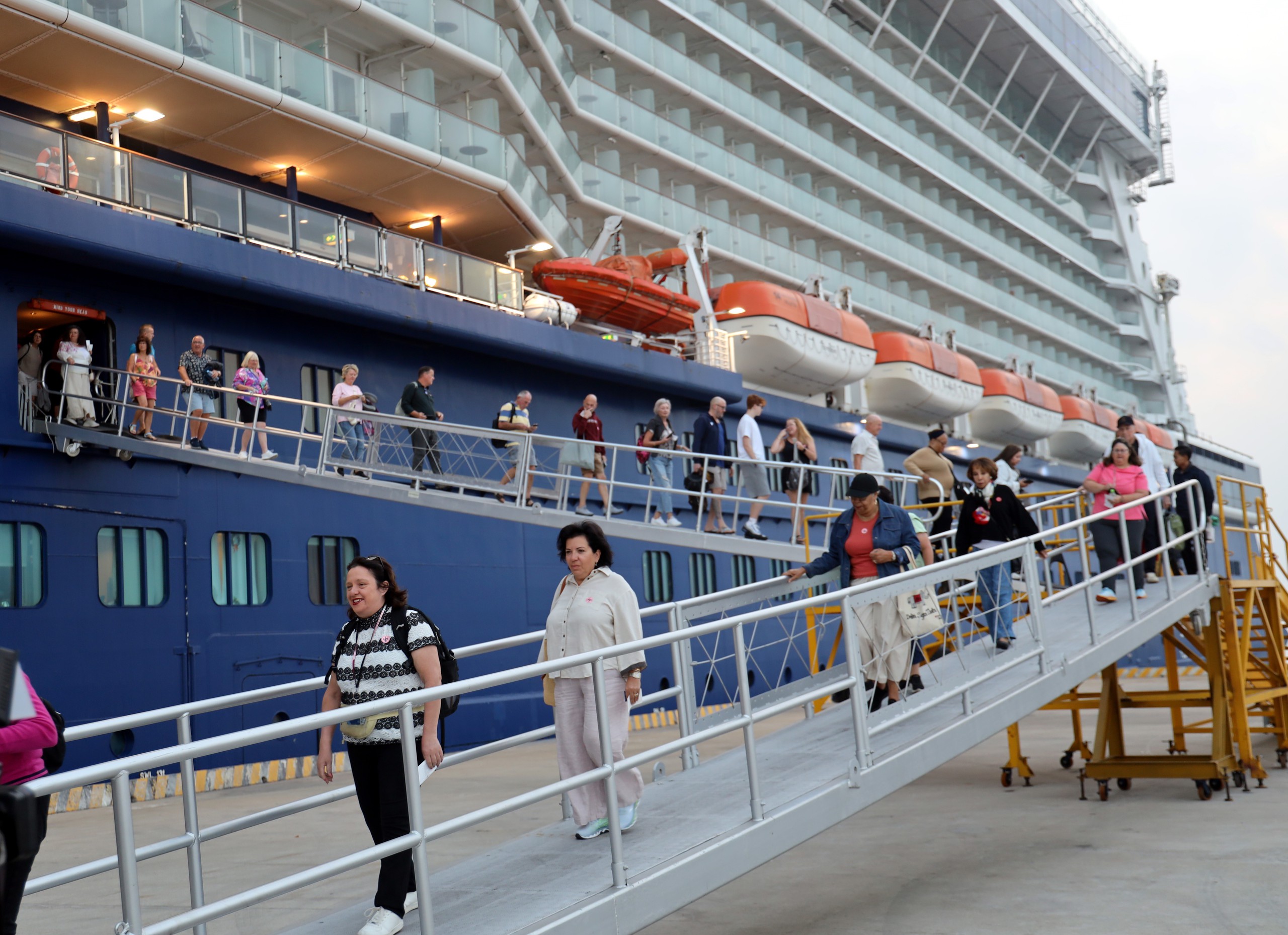 Sáng 1/1/2026, đoàn khách du lịch tàu biển đầu tiên đến với Quảng Ninh ngay đầu năm mới 2026. Tàu Clebrity Solstice mang quốc tịch Malta chở theo 3.016 khách cập Cảng tàu khách Quốc tế Hạ Long. Ảnh: Đức Hiếu - TTXVN
