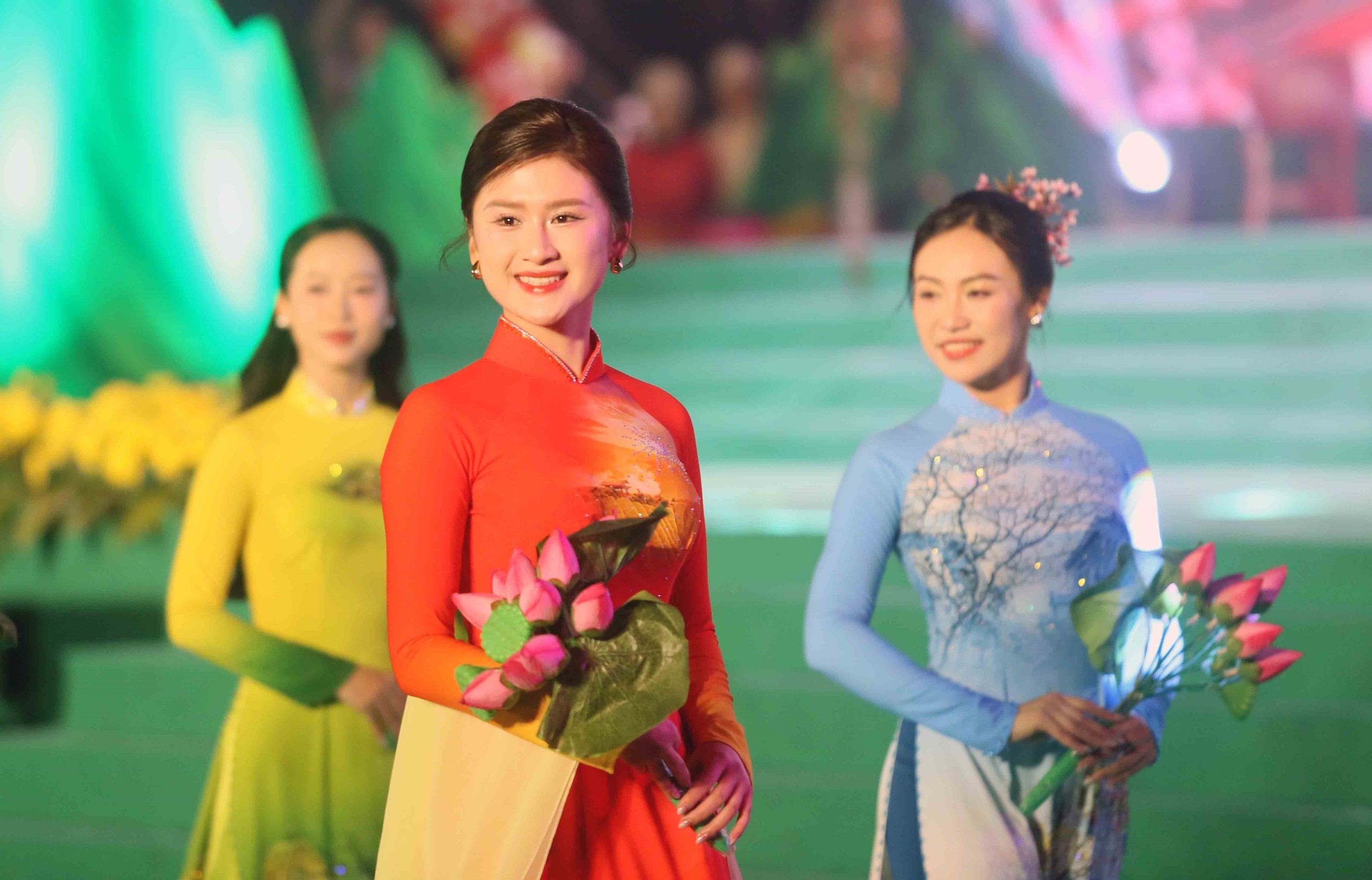 Top 10 Hoa hậu Du lịch Dân tộc Việt Nam 2025 tham gia quảng bá, xúc tiến du lịch, văn hóa, xã hội tại chương trình. Ảnh; Quang Quyết - TTXVN