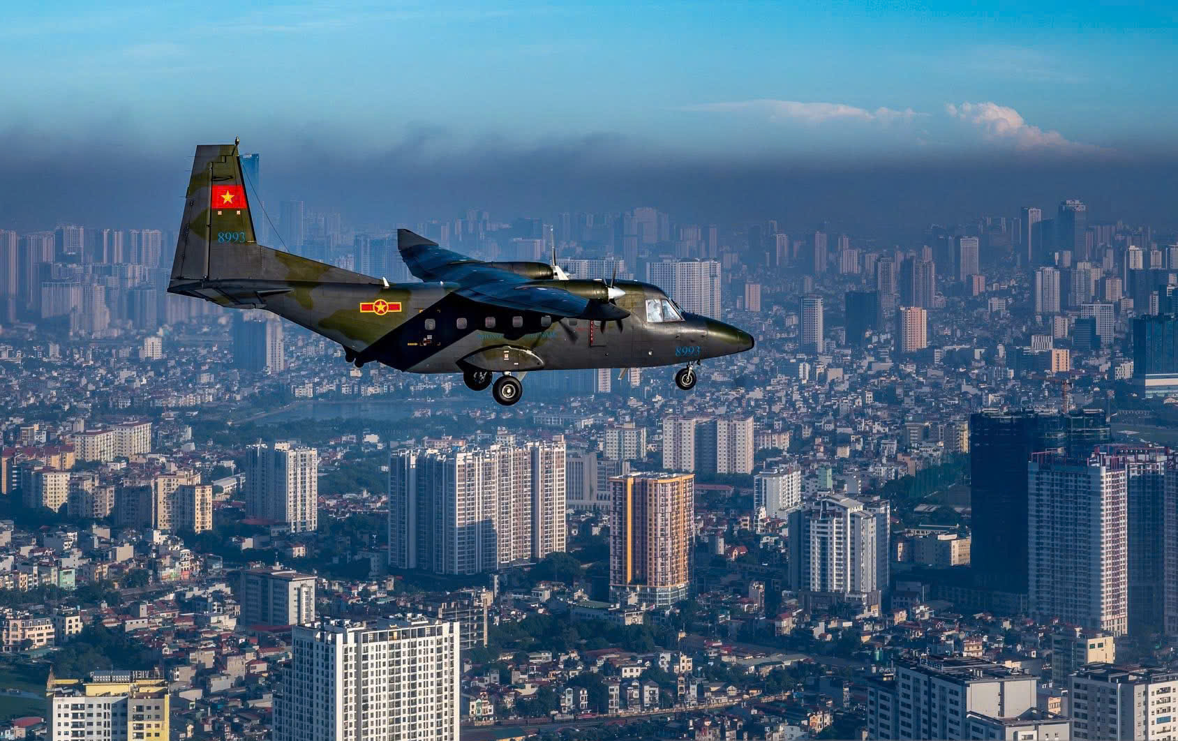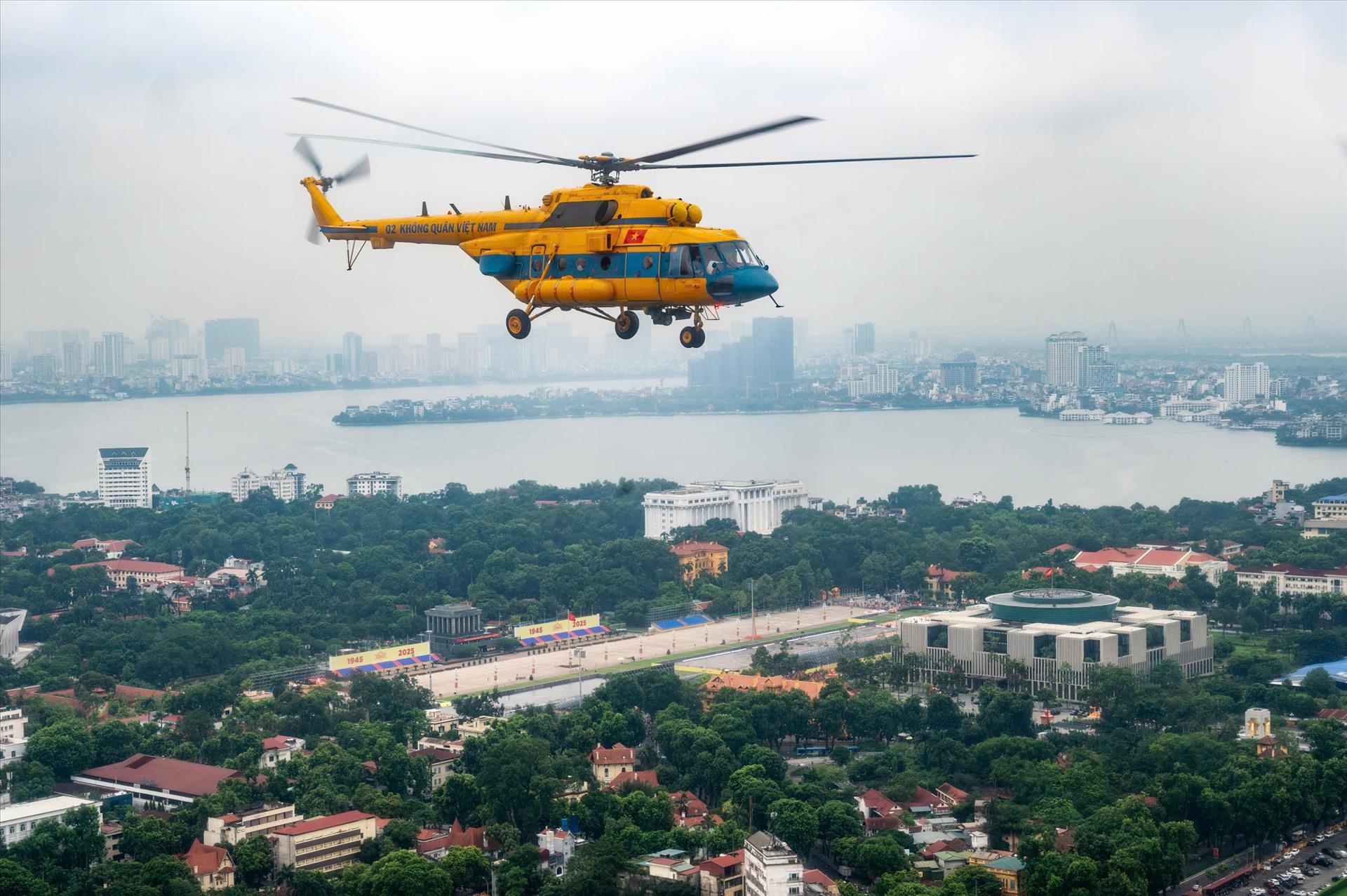 Những chiếc máy bay mang theo cờ tổ quốc, cờ đảng đi qua khu vực Hà Nội trong ngày Quốc khánh 2/9.