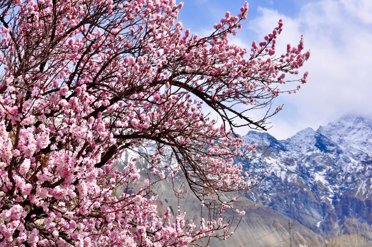 Mùa Xuân (Tháng 3 – Tháng 5): Miền cổ tích nở hoa Đây là lúc các thung lũng phía Bắc như Hunza, Swat hay Skardu bừng tỉnh sau giấc ngủ đông. Hàng triệu gốc hoa anh đào, hoa mơ, hoa mận nở rộ, nhuộm hồng cả những triền núi tuyết. Không gian mờ ảo, hương hoa thanh khiết tạo nên một khung cảnh lãng mạn như bước ra từ những bộ phim điện ảnh kinh điển.