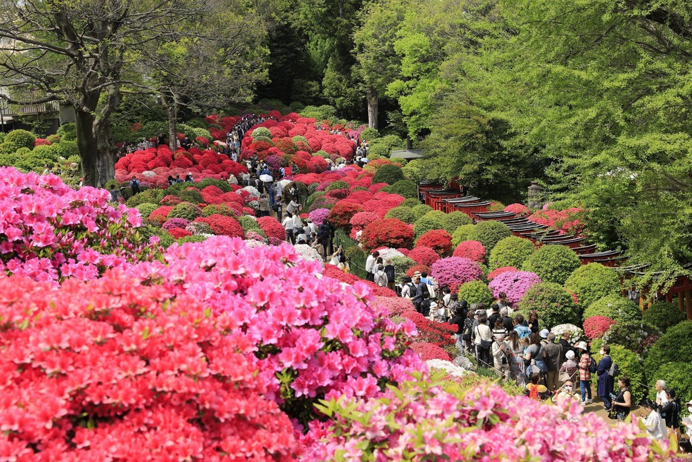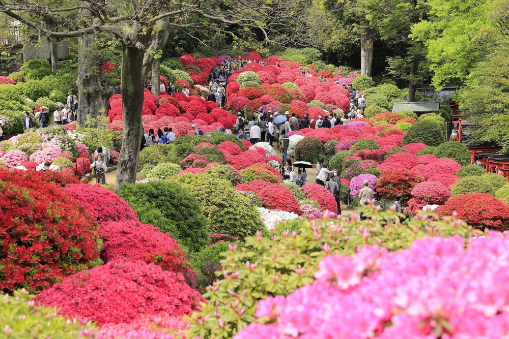 Đền Nezu gần 1.900 năm tuổi ở quận Bunkyo, thủ đô Tokyo (Nhật Bản) nổi tiếng với Lễ hội hoa đỗ quyên - một trong các lễ hội hoa mùa Xuân được đón chờ nhất trong năm ở Nhật Bản.