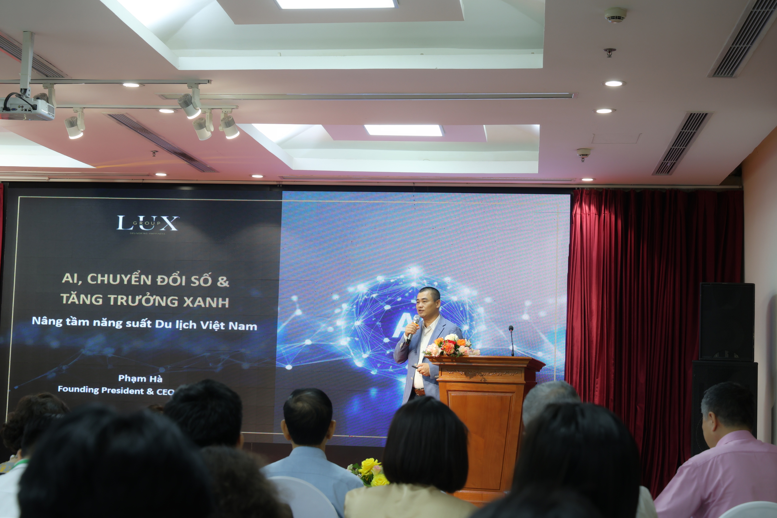 Tại phiên thảo luận, các chuyên gia và lãnh đạo doanh nghiệp đã chia sẻ nhiều giải pháp thực tiễn đầy ấn tượng. TS. Nguyễn Anh Tuấn, Viện trưởng Viện Kinh tế Du lịch, đã phân tích sâu về xu hướng chuyển đổi số toàn cầu, trong khi TS. Phạm Hà - Chủ tịch LuxGroup nhấn mạnh đến khái niệm "chuyển đổi kép": chuyển đổi số để nâng cao năng suất và chuyển đổi xanh để phát triển bền vững.
