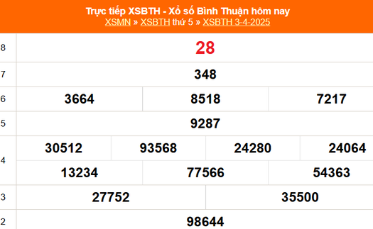 XSBTH 11/12: Phát hành bởi công ty xổ số kiến thiết Bình Thuận quay thưởng vào lúc 16h10 ngày thứ Năm hàng tuần. Trực tiếp kết quả XSMN cập nhật nhanh nhất trên Thethaovanhoa.vn.